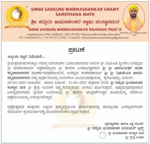 20.03.24 to 21.03.2025 Sri.Vidhushekhar Bharathi Sannidhana Vijay Yatra at Bheemashankar Swamy Math