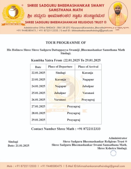 Prayagraj Kumba Yatra by Sri Dattapayya Swamiji, Bheema shankar Math, Sindagi from 22.01.25 to 29.02.2025